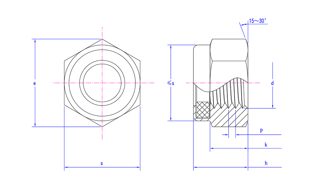| Ciri dalaman | Dalaman dengan sisipan bahan bukan logam, seperti cincin nilon, untuk meningkatkan geseran dan daya mengunci |